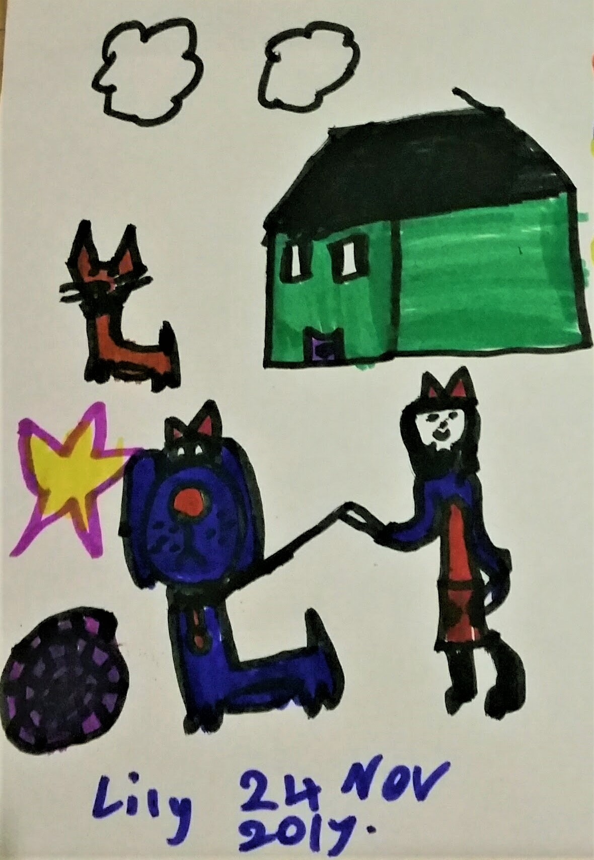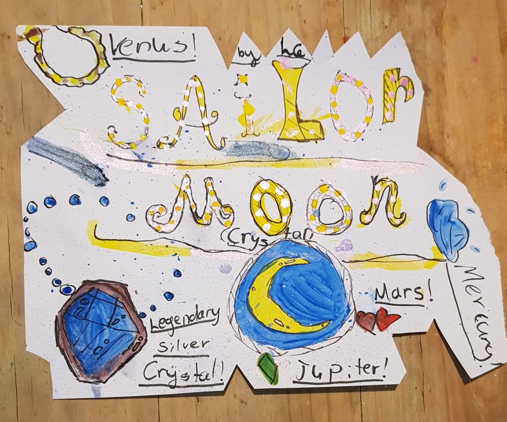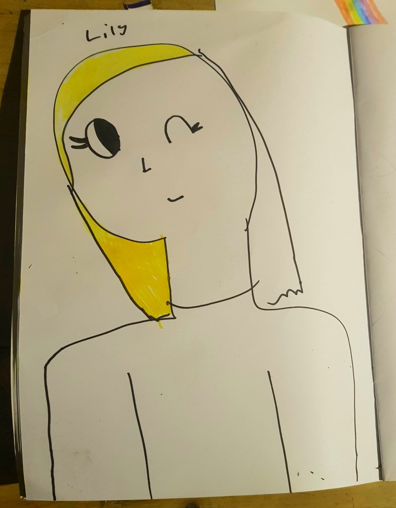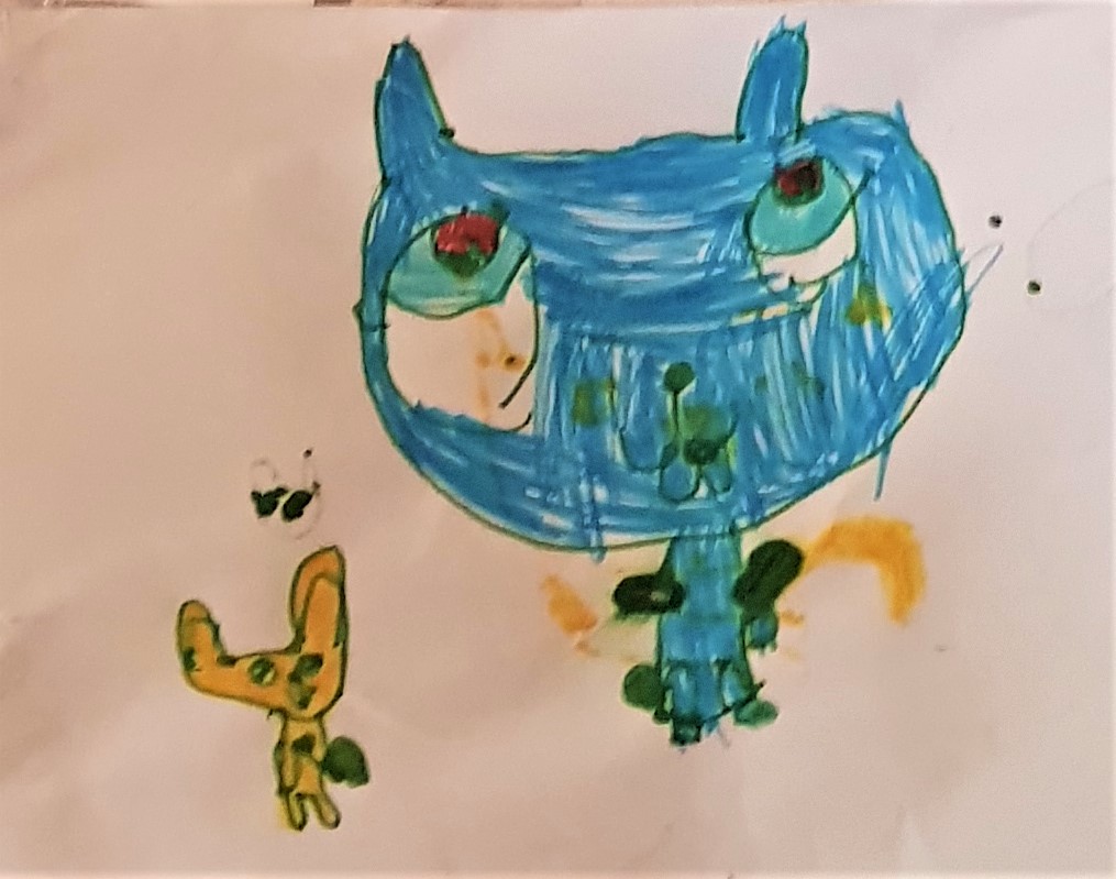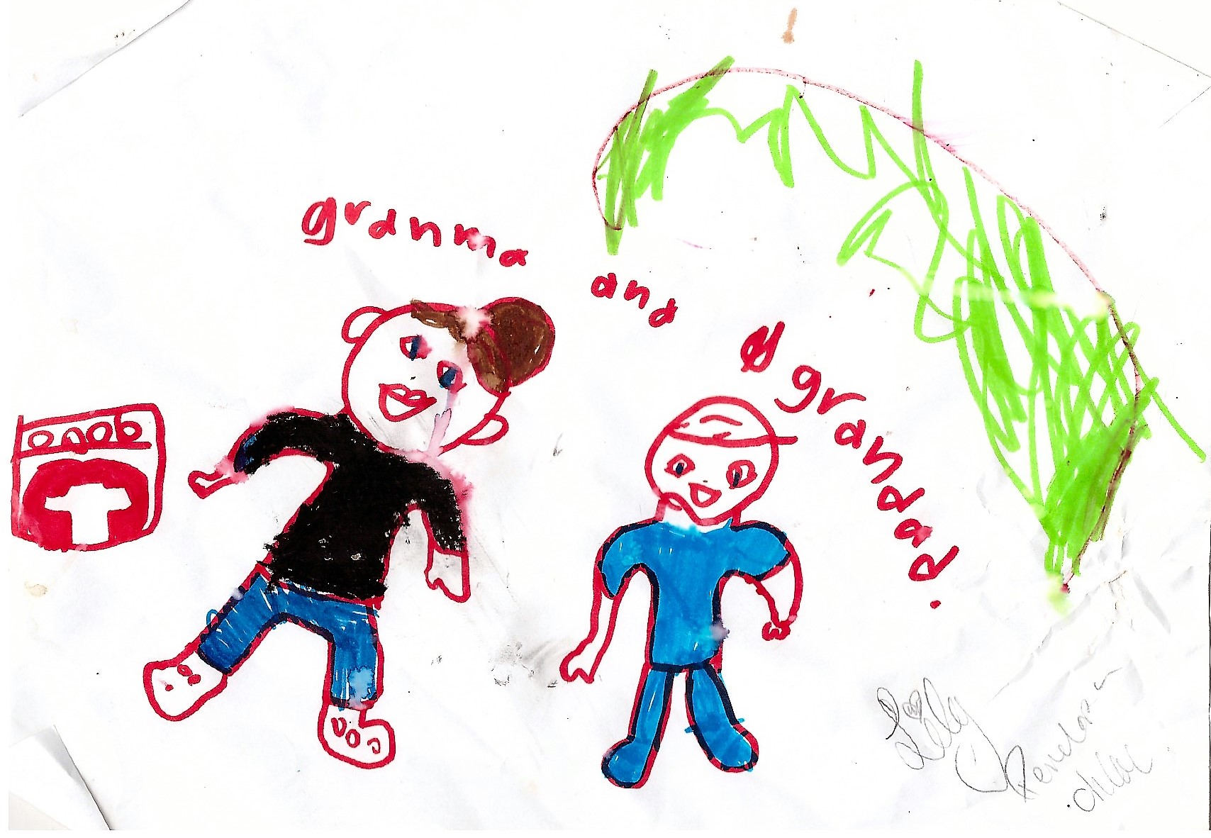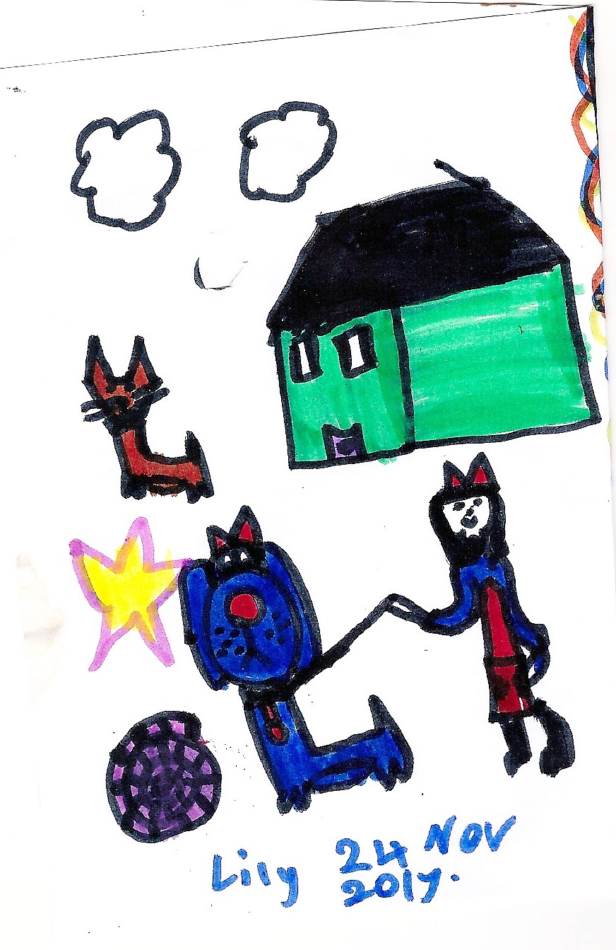 Here are some drawings and art work my grandkids have made over the last few years. There’s some art of my kids too, though not much because the camera phone wasn’t around then. My kids’ art is taken from screenshots of a video I took many years ago.