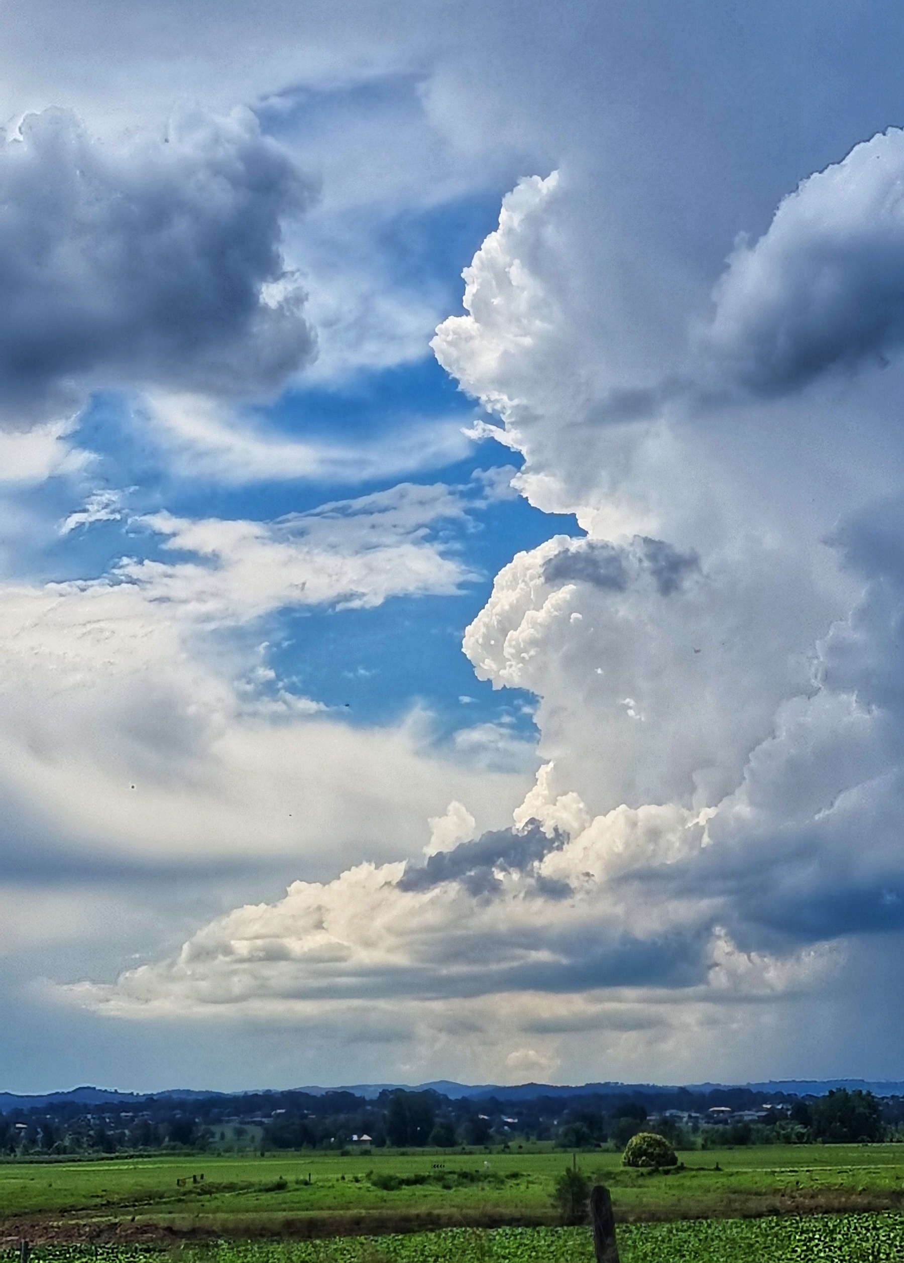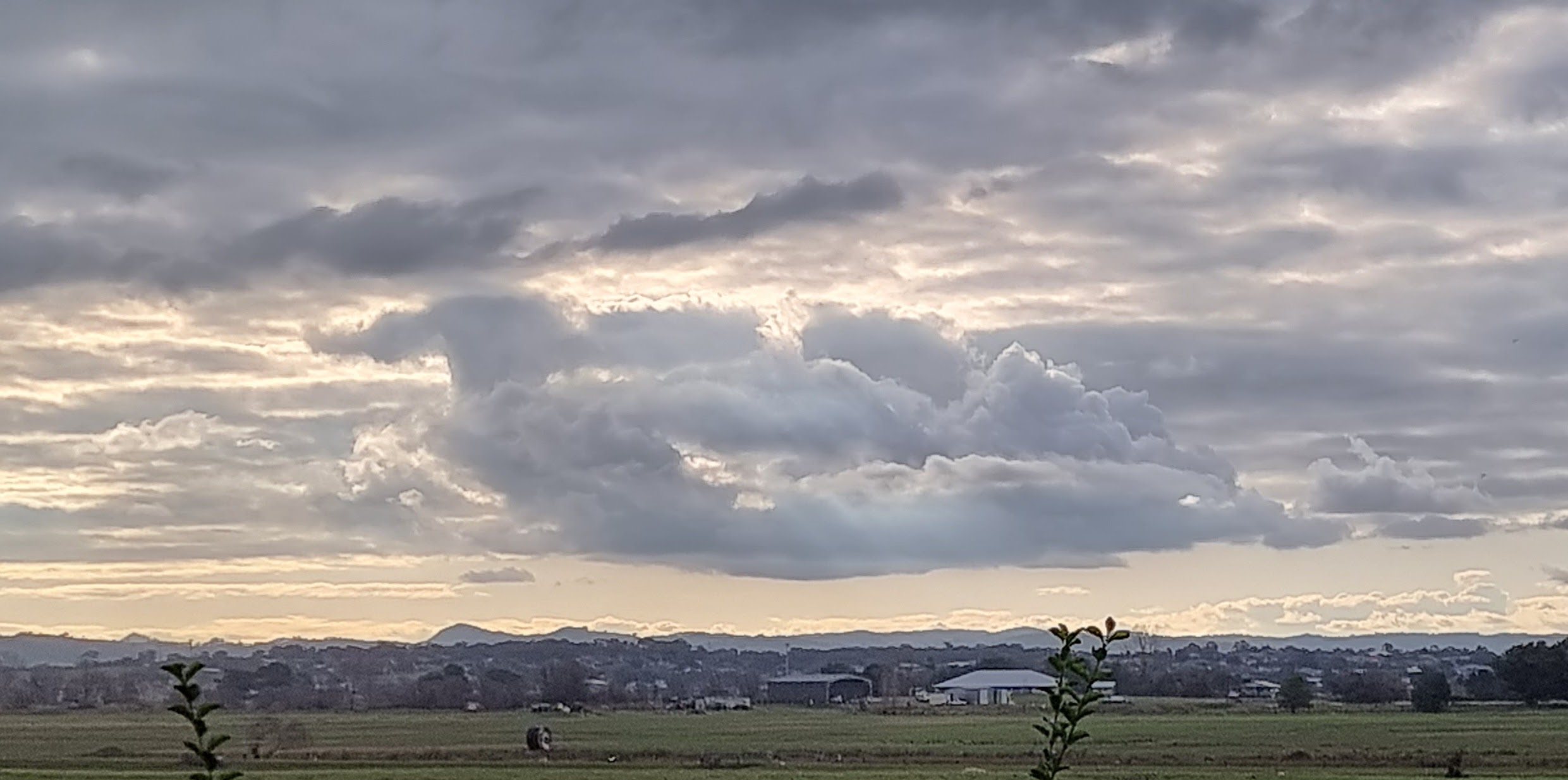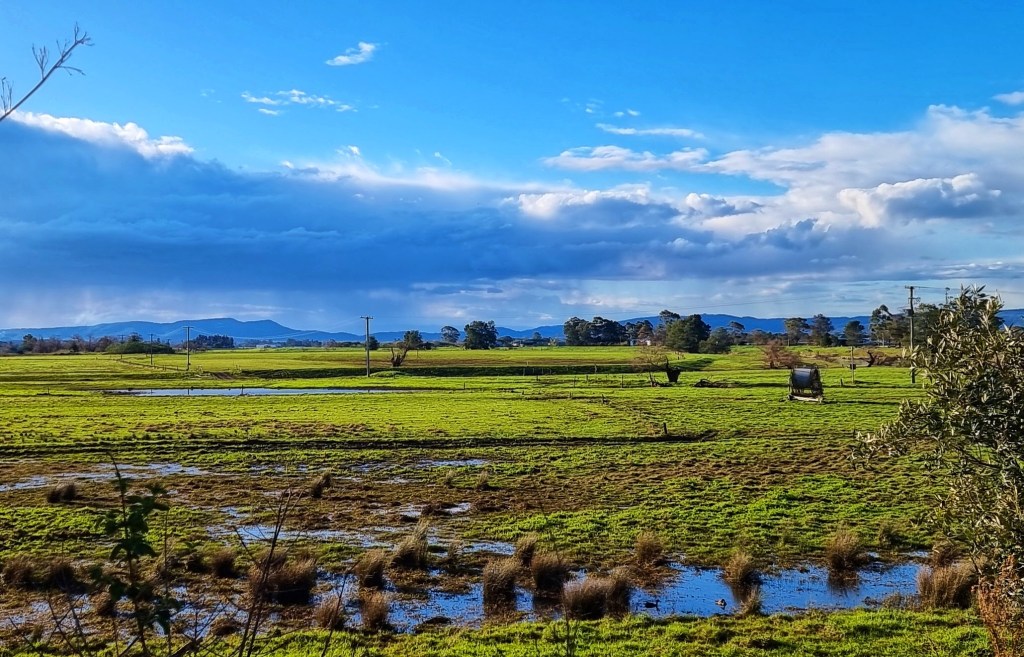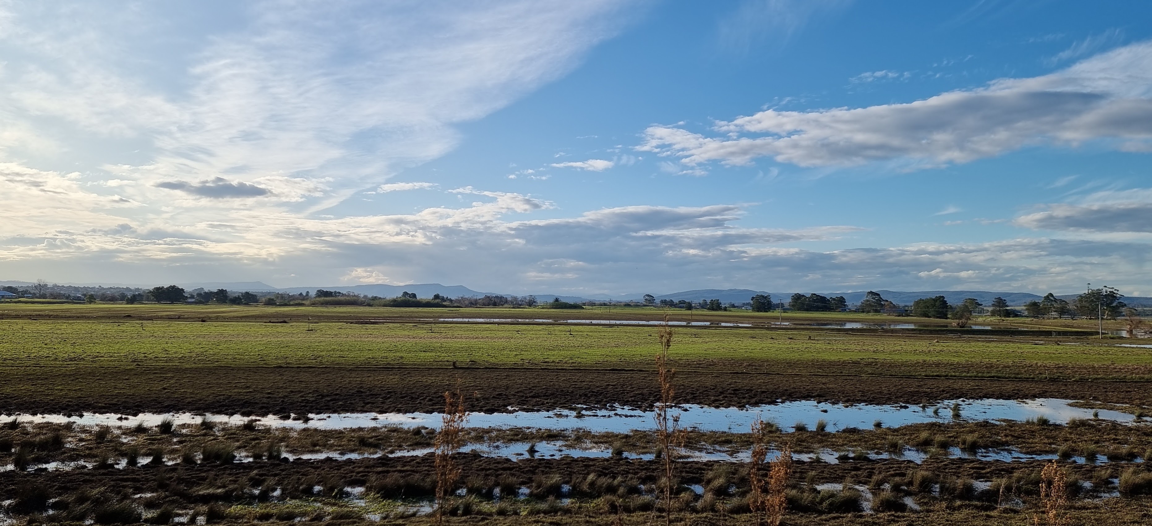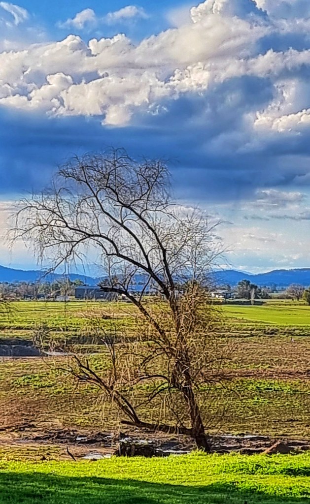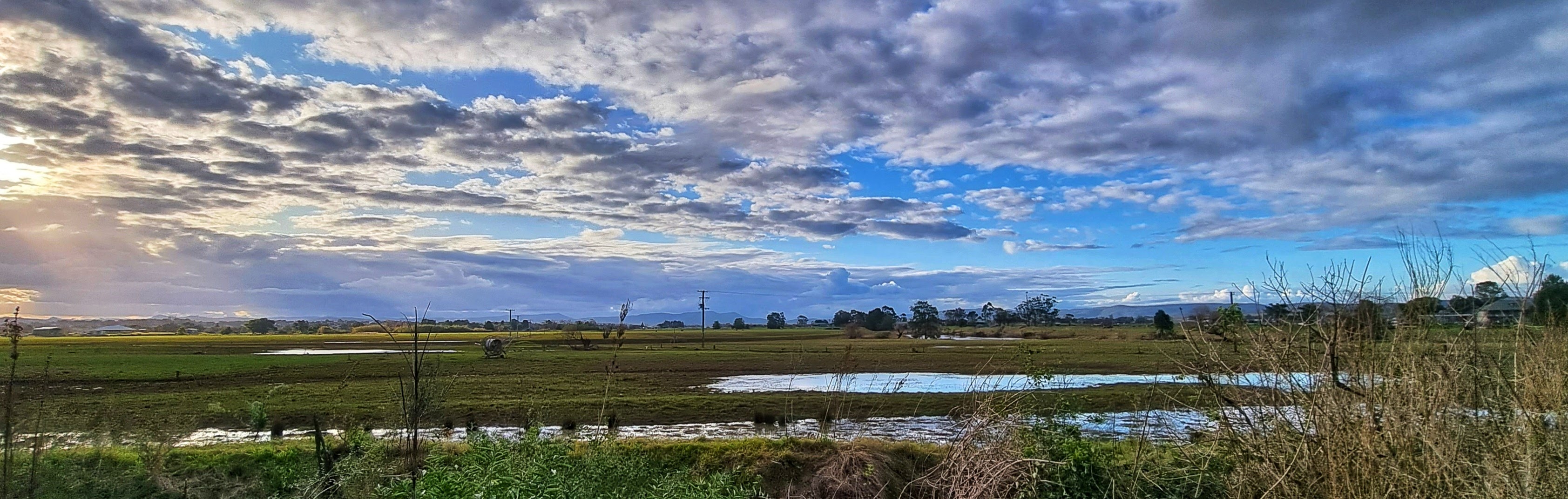 I live near a river that has a large flood plain to the north. We are very lucky because our home is on high ground so when the river floods we have “water views” but we don’t suffer the effects of a flood. The flood plain is quite large and consequently the views are expansive. This makes the sky and the clouds a prominent feature of the landscape.