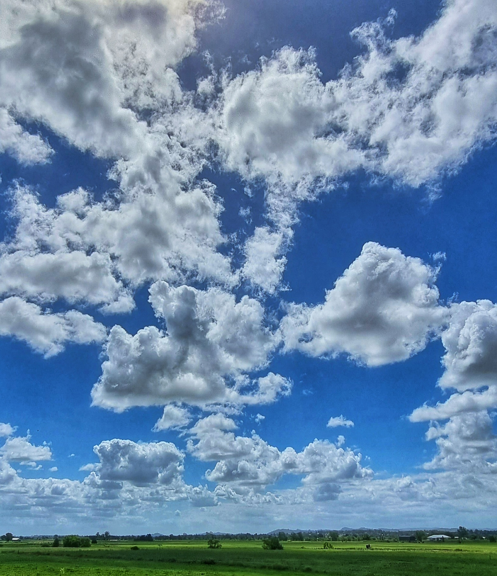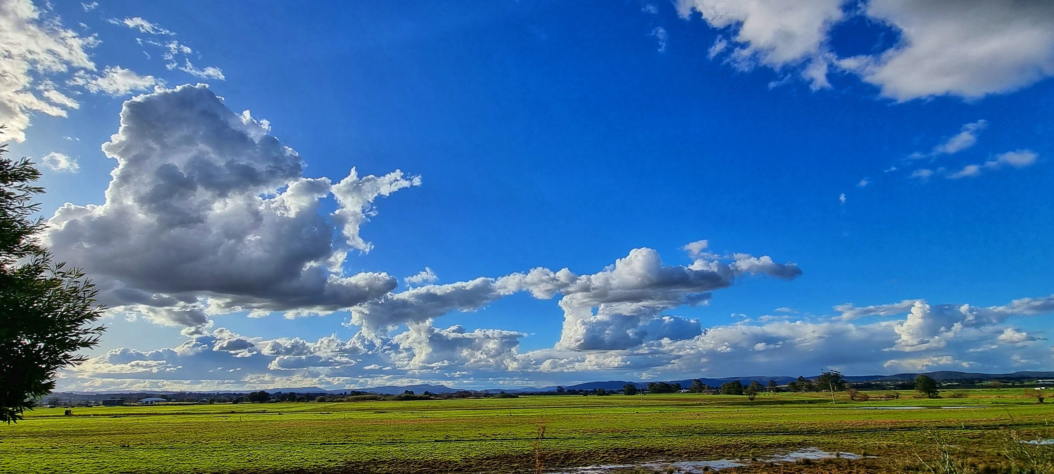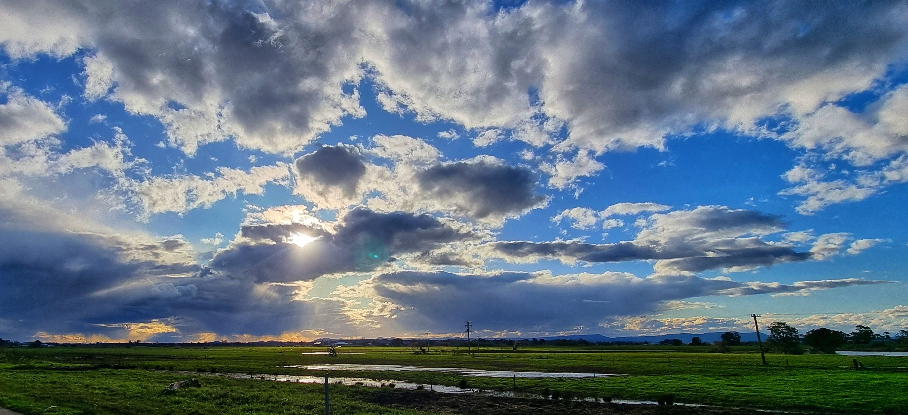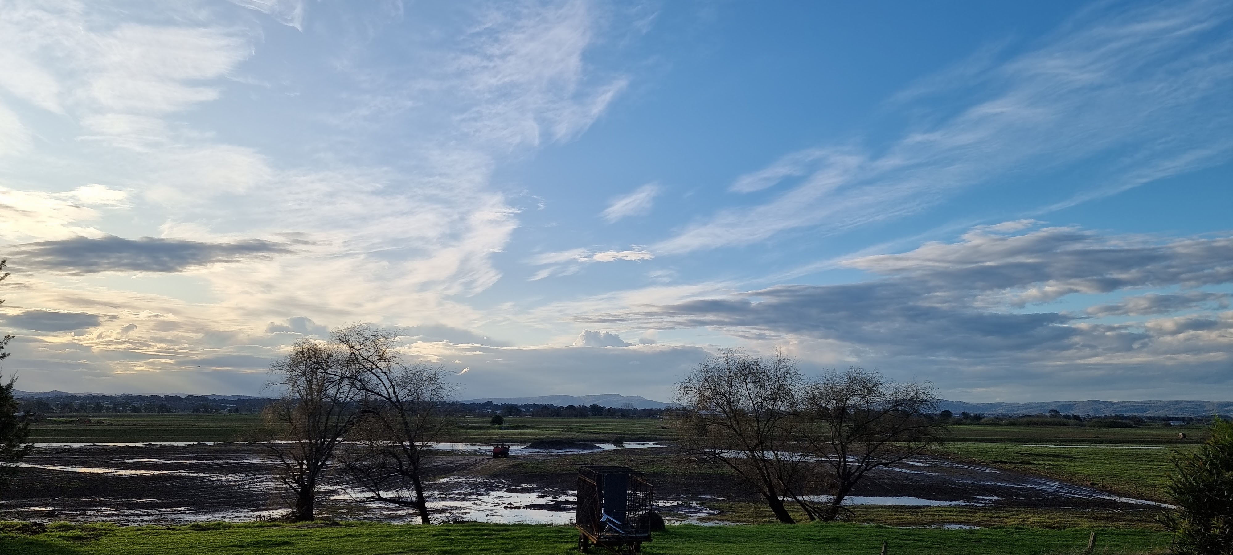 I live near a river that has a large flood plain to the north. We are very lucky because our home is on high ground so when the river floods we have “water views” but we don’t suffer the effects of a flood. The flood plain is quite large and consequently the views are expansive. This makes the sky and the clouds a prominent feature of the landscape.