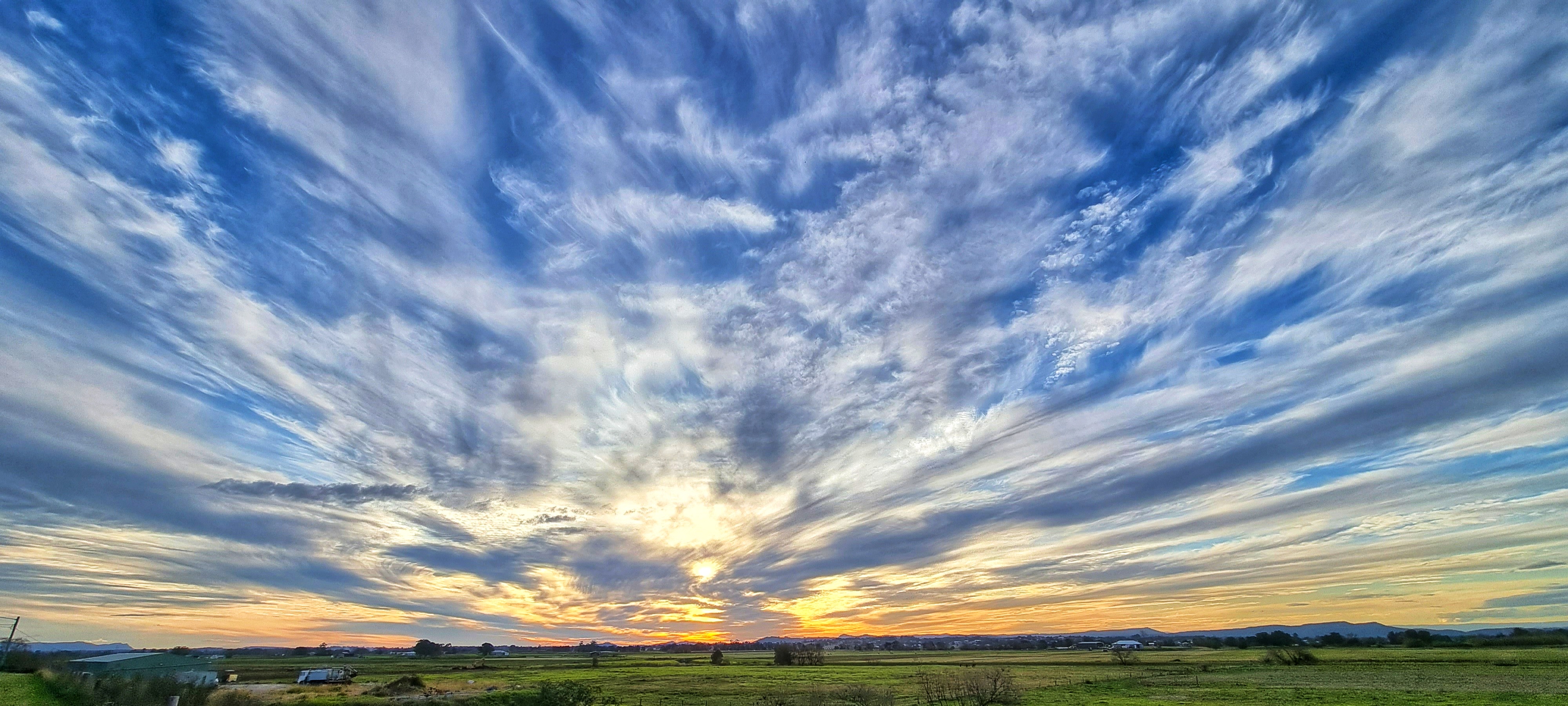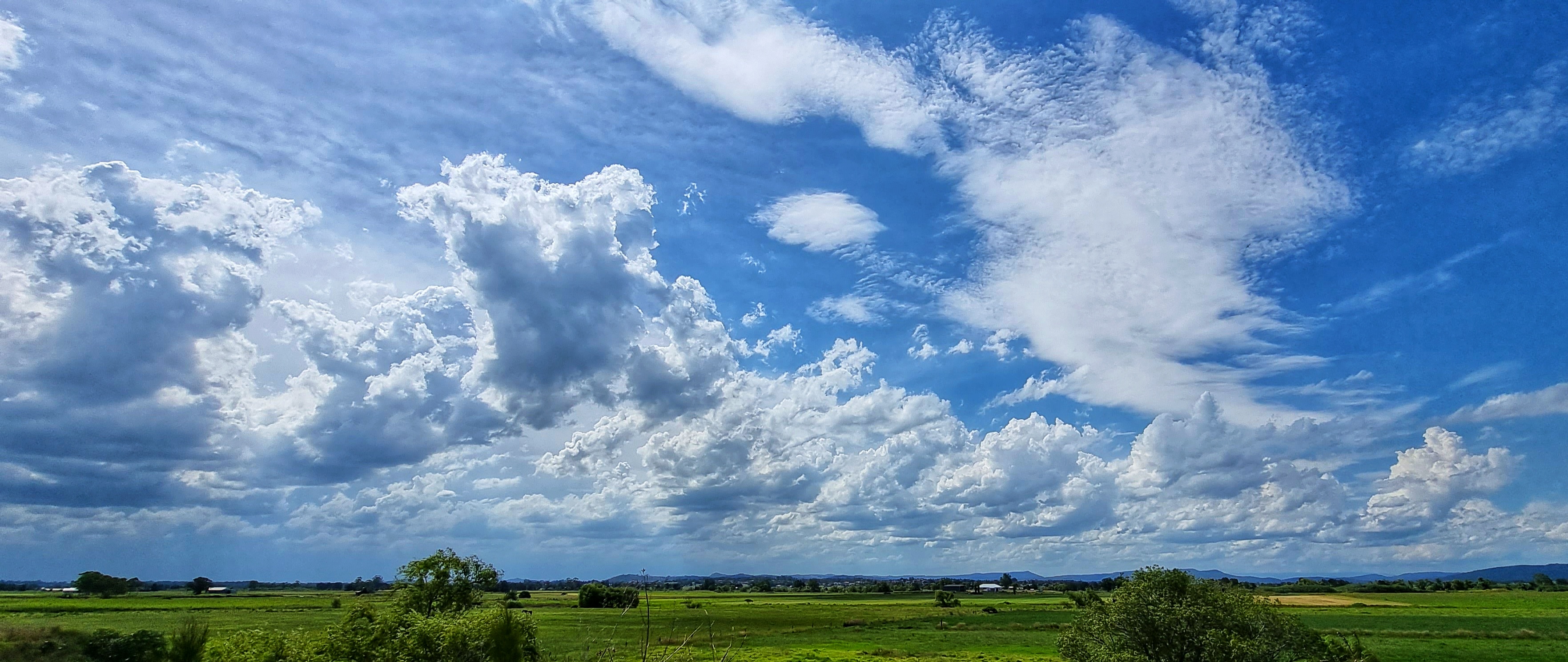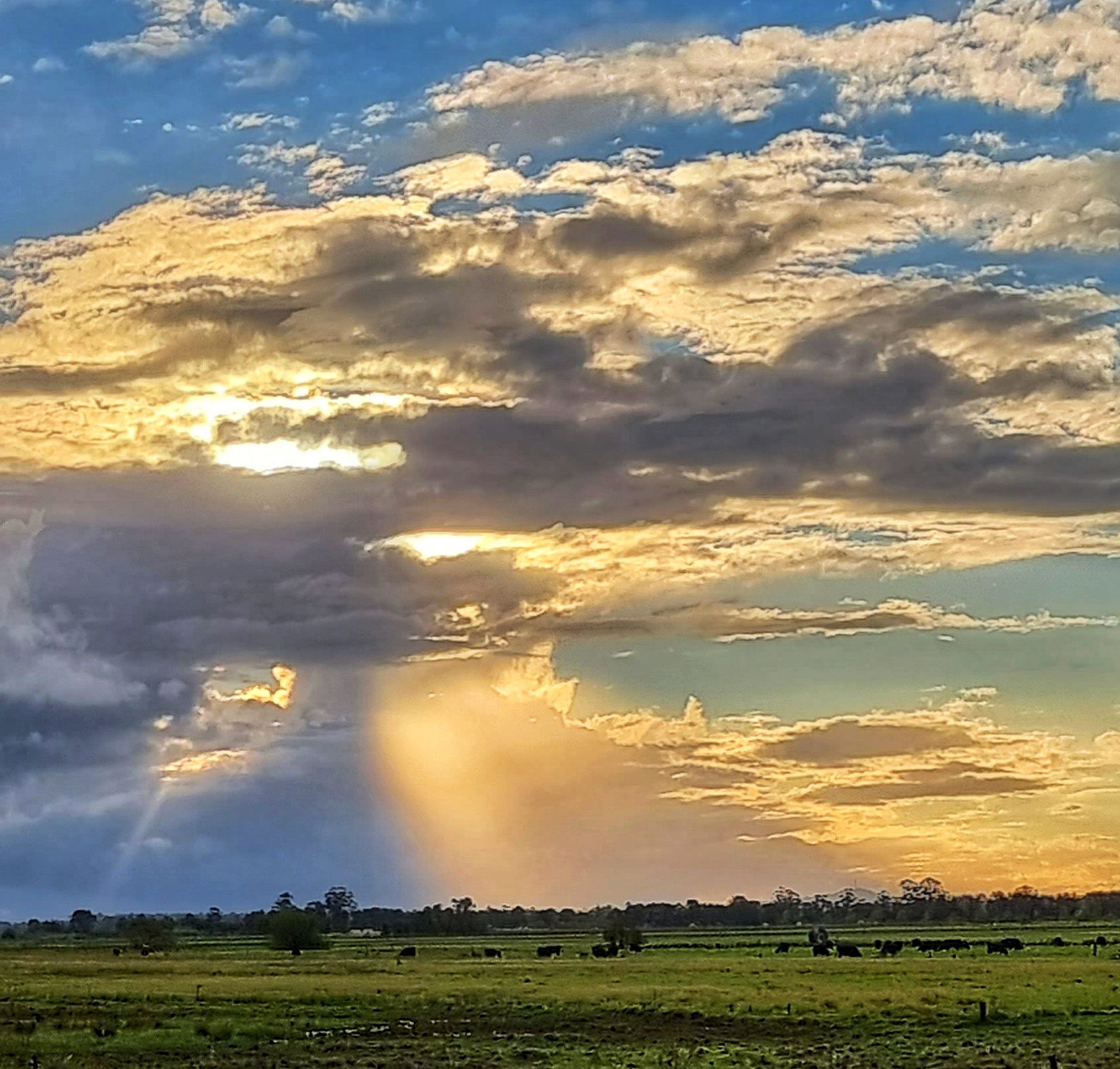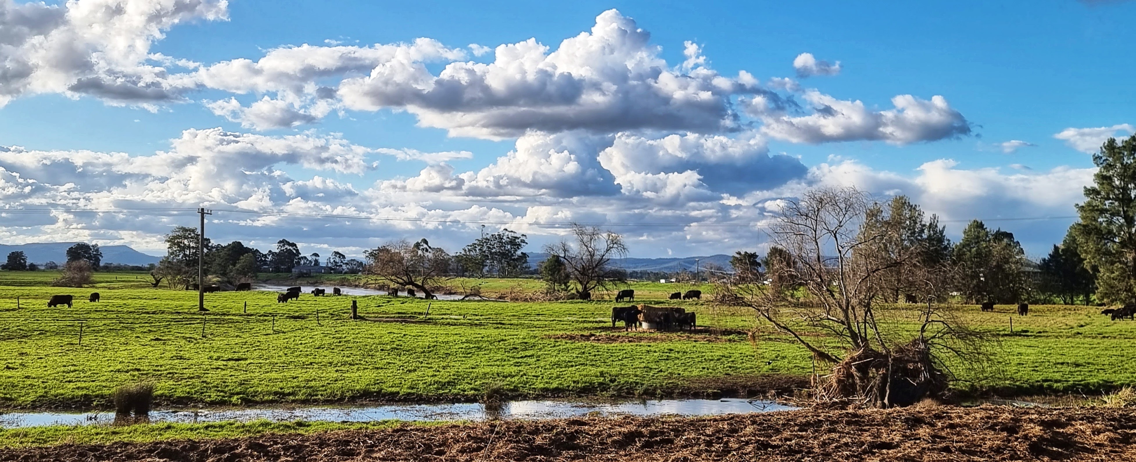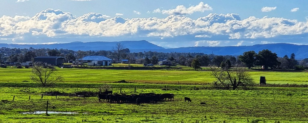 I live near a river that has a large flood plain to the north. We are very lucky because our home is on high ground so when the river floods we have “water views” but we don’t suffer the effects of a flood. The flood plain is quite large and consequently the views are expansive. This makes the sky and the clouds a prominent feature of the landscape.