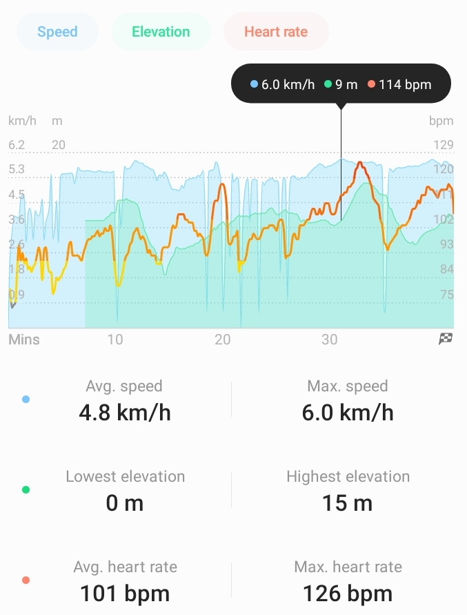 Before I leave home for the walk I do one set of dumb bell exercises that I found on YouTube. When I reach the first kilometre I stop and meditate for about 15 minutes. During the walk there is a 1 km stretch that’s a walkway with fence posts on either side of the path. To increase my heart rate I do press ups against the larger posts. Since they are lean to press ups they are far easier than horizontal on the ground. I do 100 on the way out and 100 on the way back.
